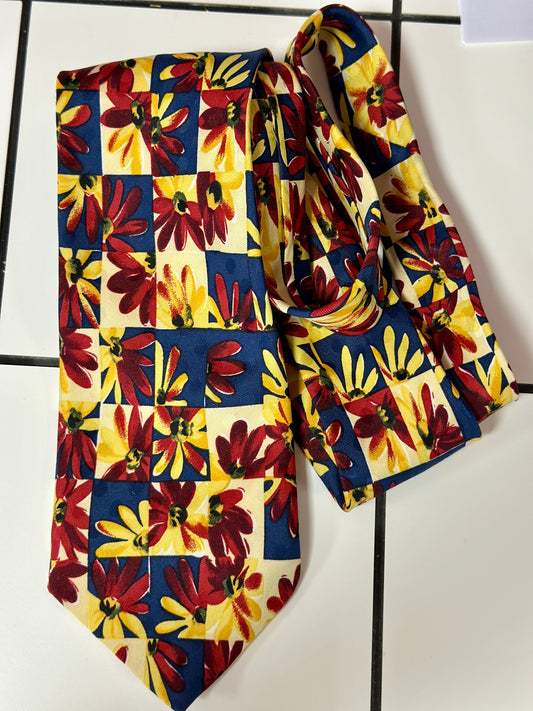 Cravate damier et fleurs