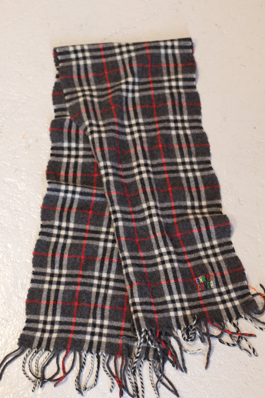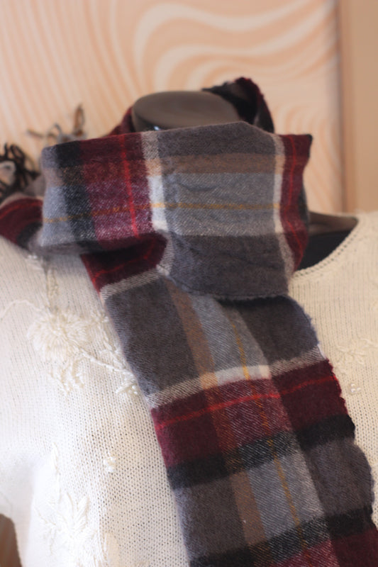 Écharpe à carreaux grise et bordeaux