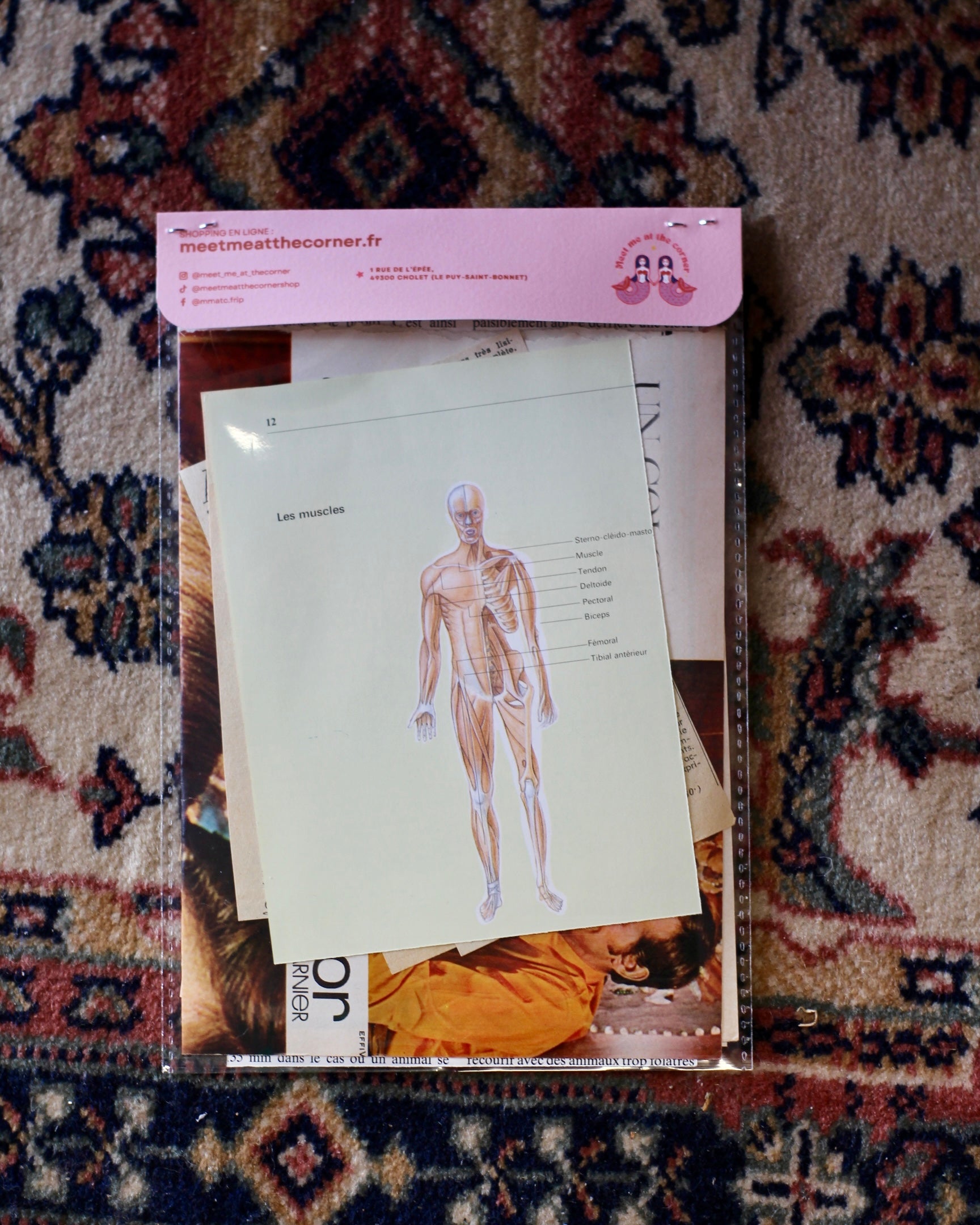 Plonge dans l’univers du papier ancien avec cette pochette de scrapbooking vintage, composée d’extraits soigneusement sélectionnés dans des livres et magazines datant des années 40 aux années 90.