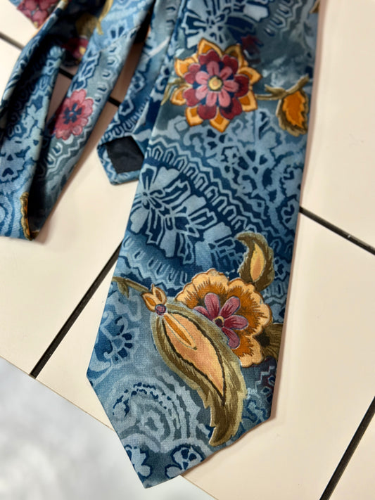 Cravate bleue à fleurs