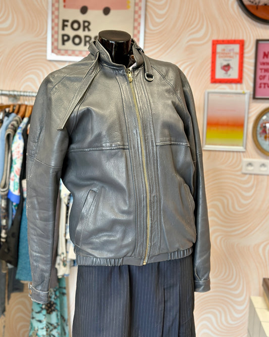 Veste bomber en cuir gris | T. M