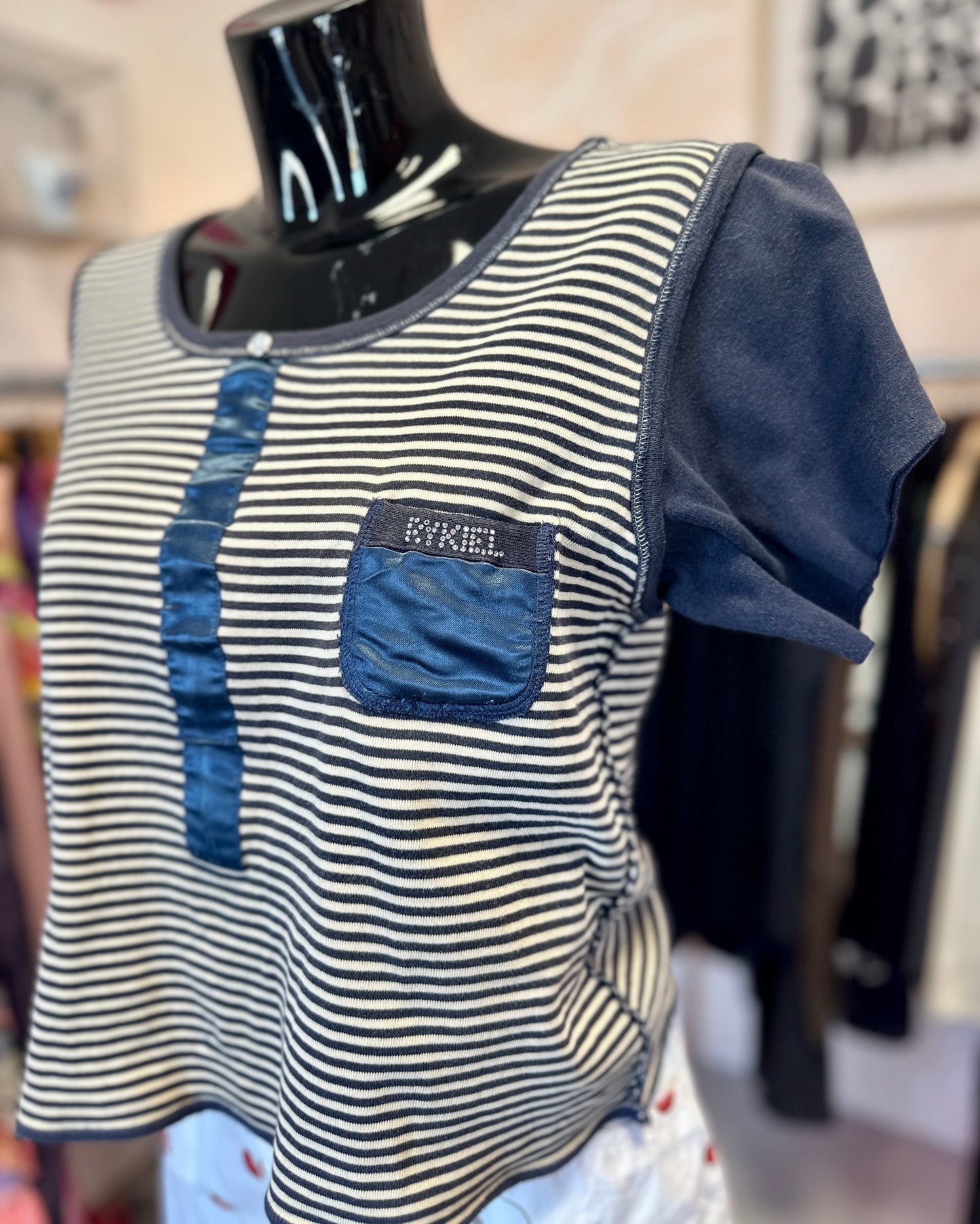 Sonia Rykiel, c’est l’incarnation de la Parisienne libre, audacieuse et magnétique. Surnommée la « reine du tricot », elle a bousculé les codes dès les années 70 avec des vêtements à la fois intellectuels, confortables et furieusement modernes. Dans les années 90, sa griffe est à son apogée : rayures colorées, maille luxueuse, silhouettes souples, touches d’humour et d’impertinence couture. Les pièces vintage de cette époque — pulls en laine fine, robes fluides, tailleurs en maille, vestes à rayures ou broderies discrètes — sont recherchées pour leur élégance sans effort et leur esprit libre. Porter du Sonia Rykiel des années 90, c’est affirmer son goût pour une mode créative, joyeuse et profondément féminine.