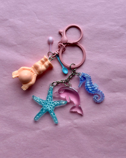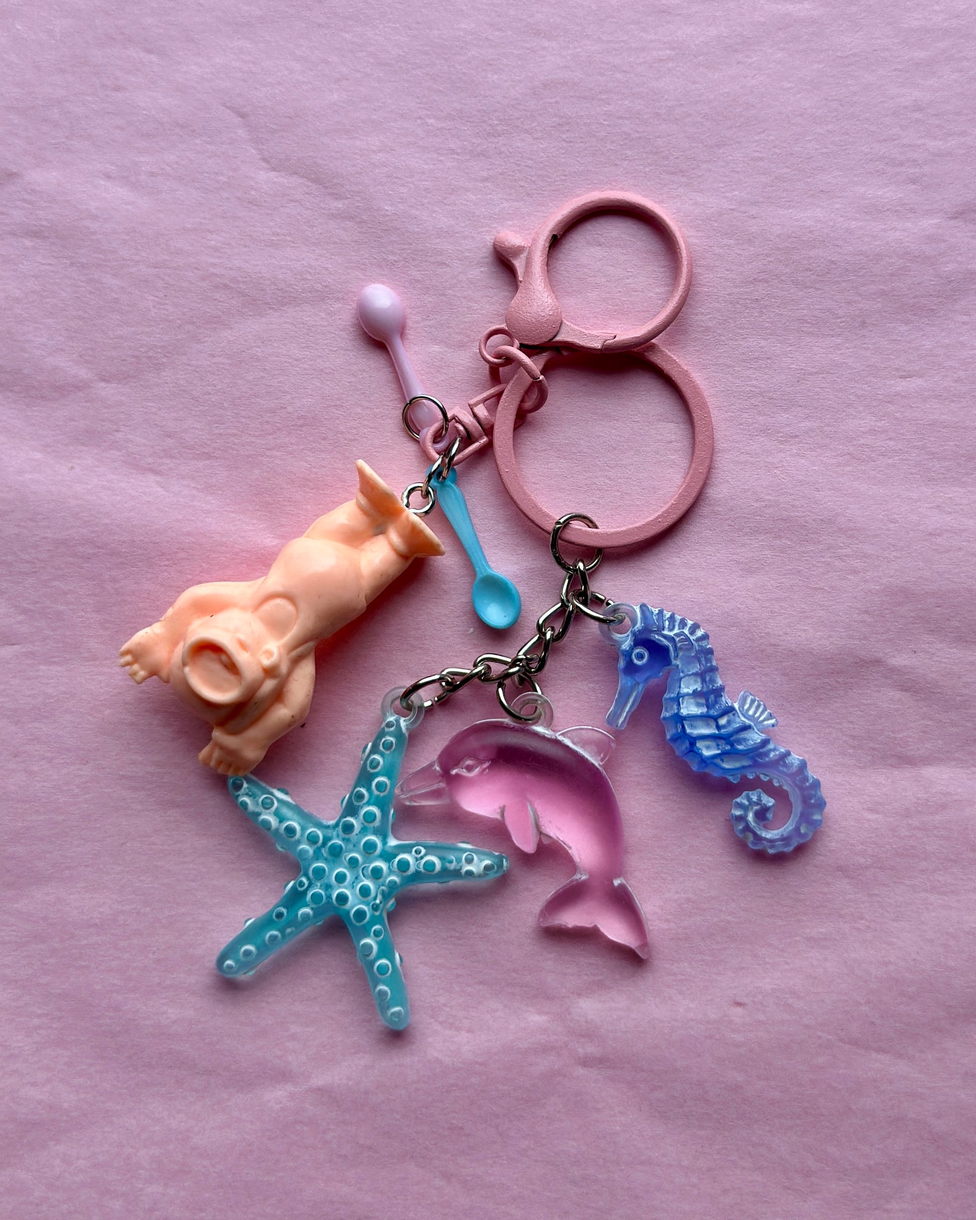 - Des breloques : 2 petites cuillères pastel, des breloques vintage sur le thème de la mer