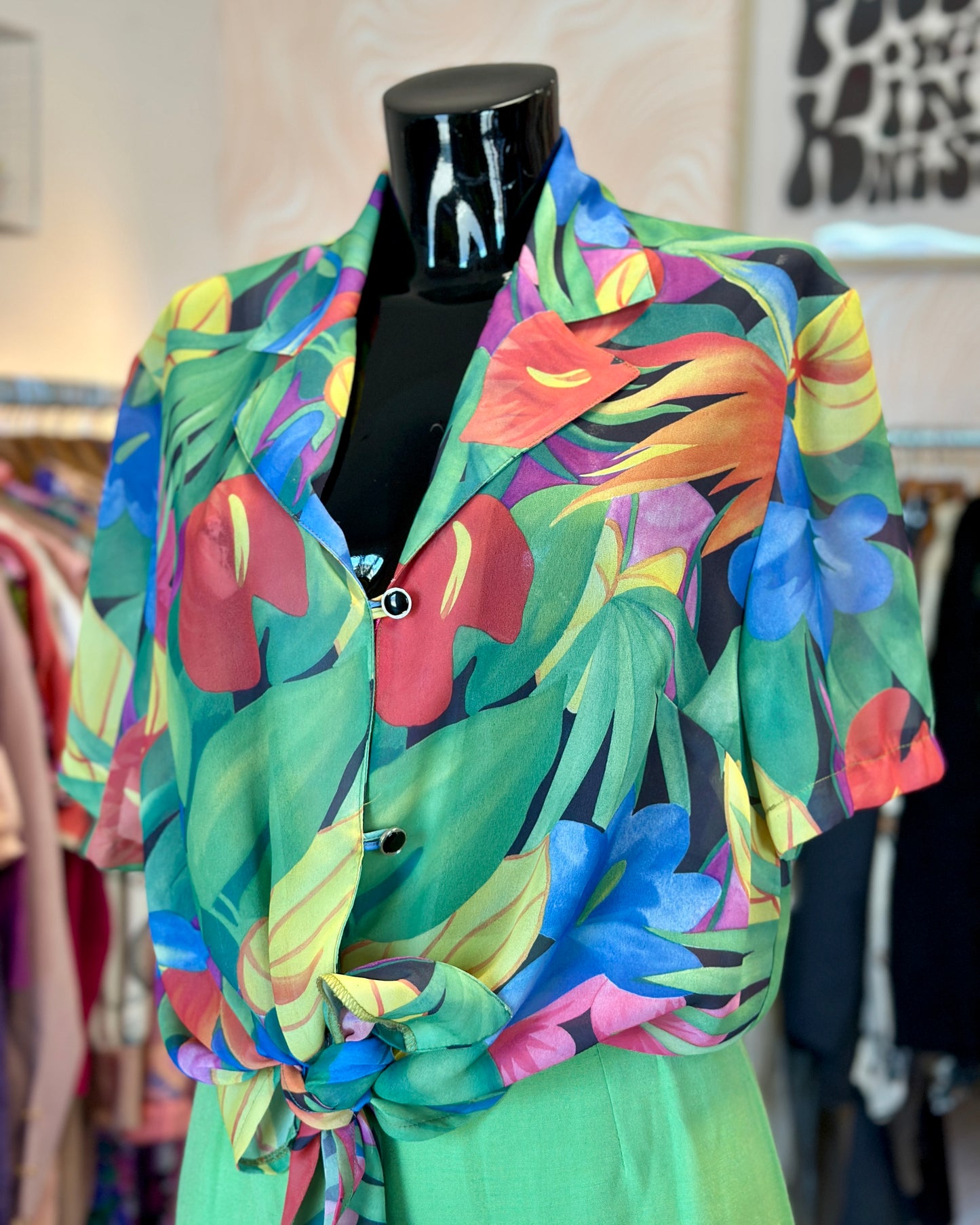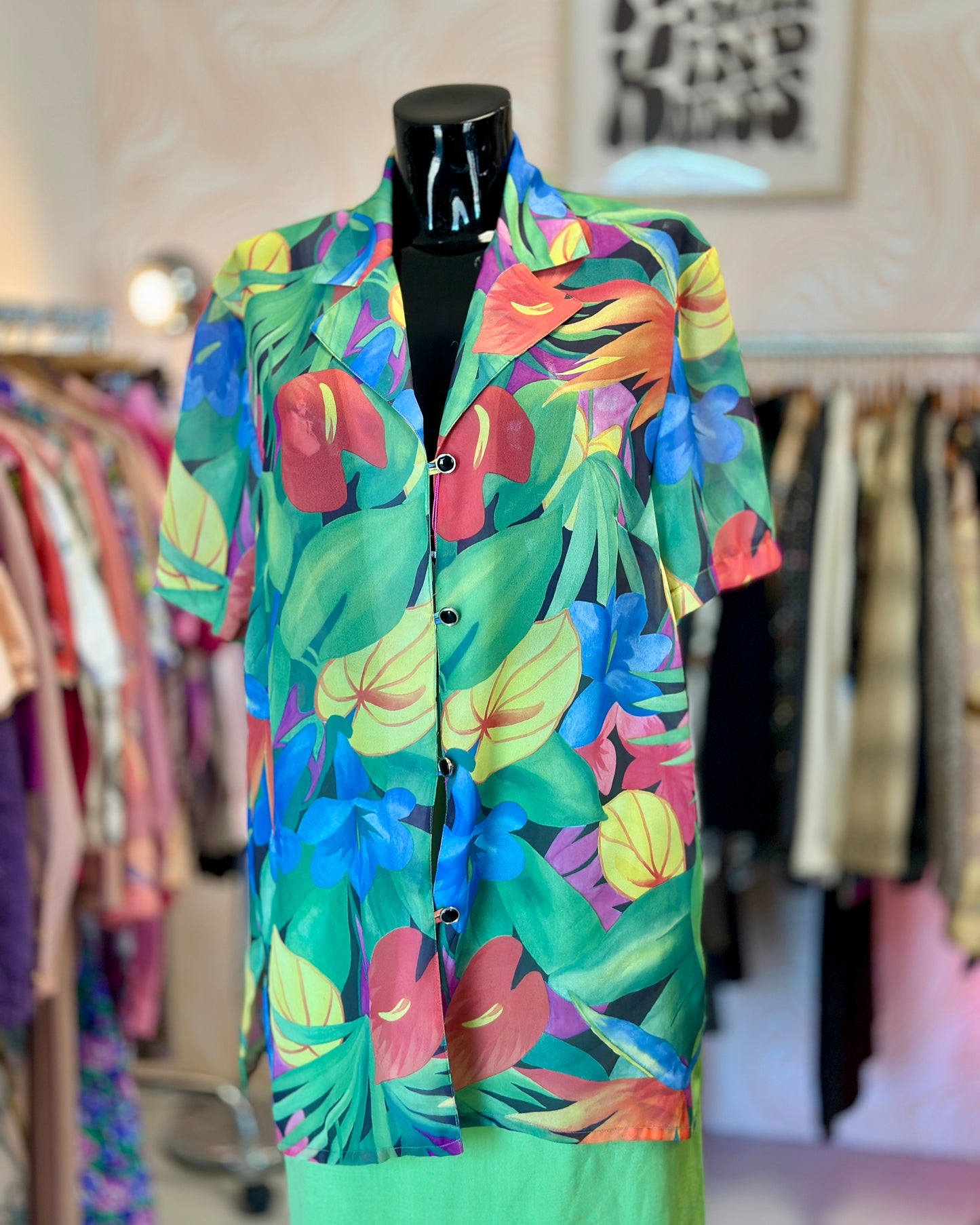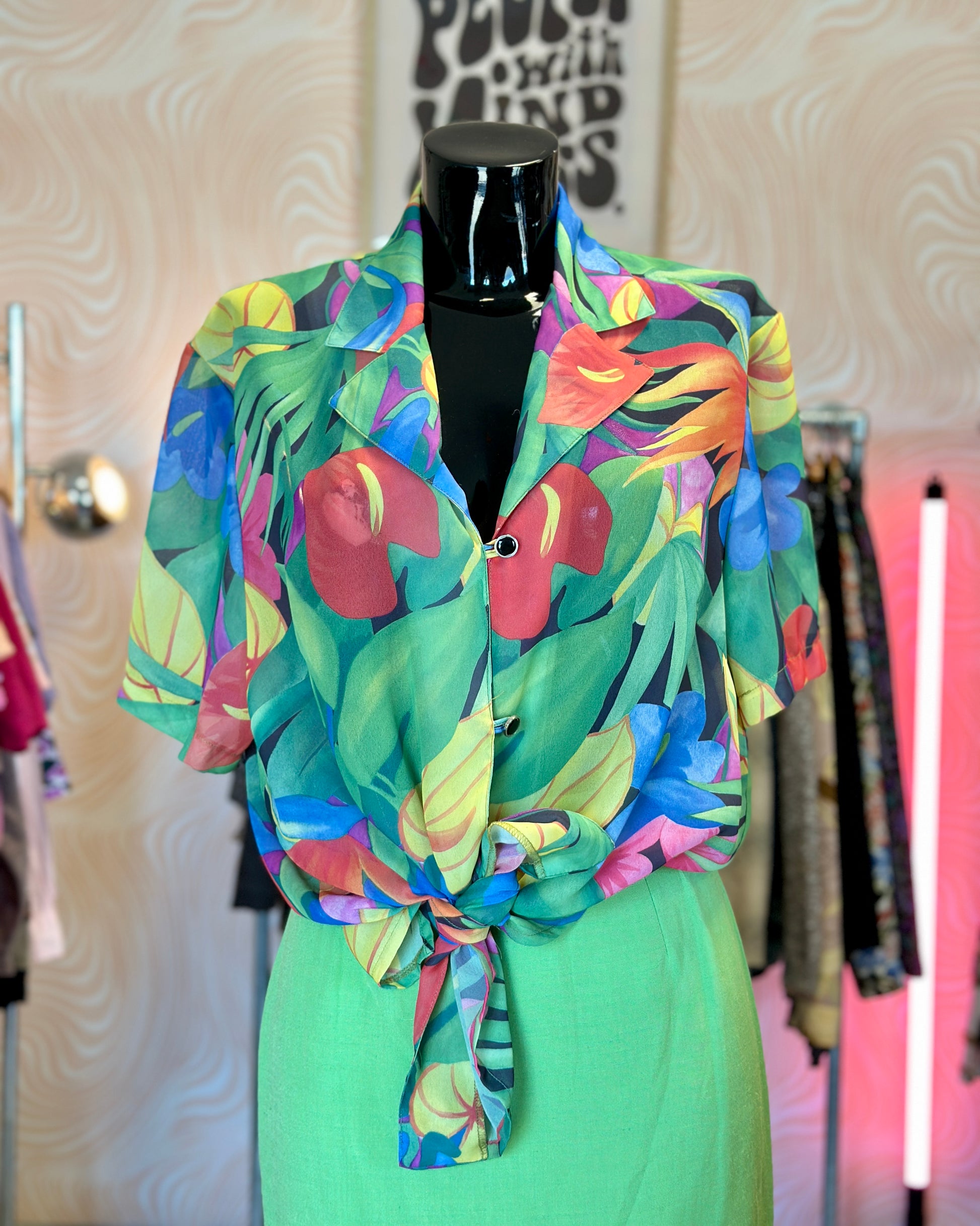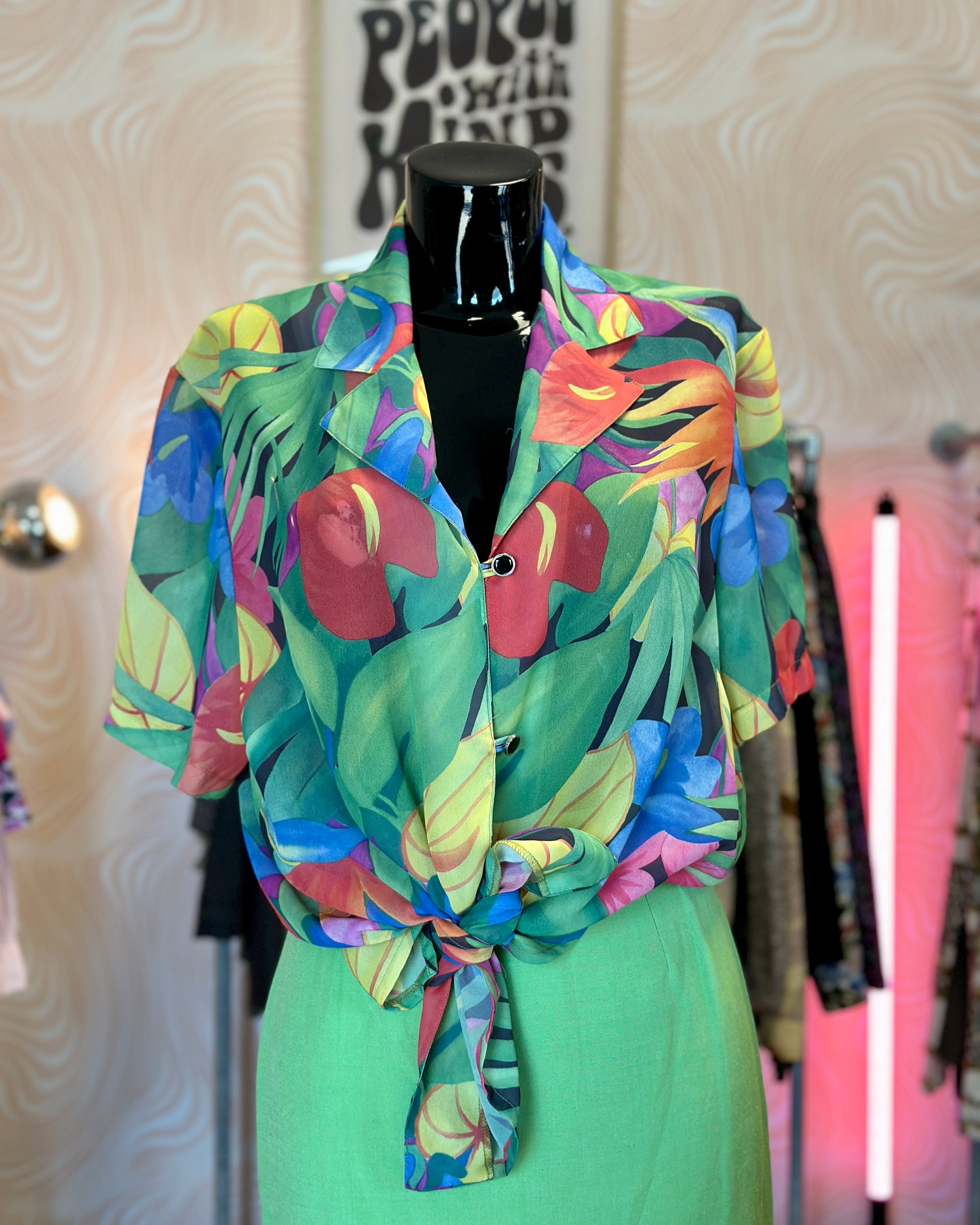 Chemise fluide à motif tropical.
