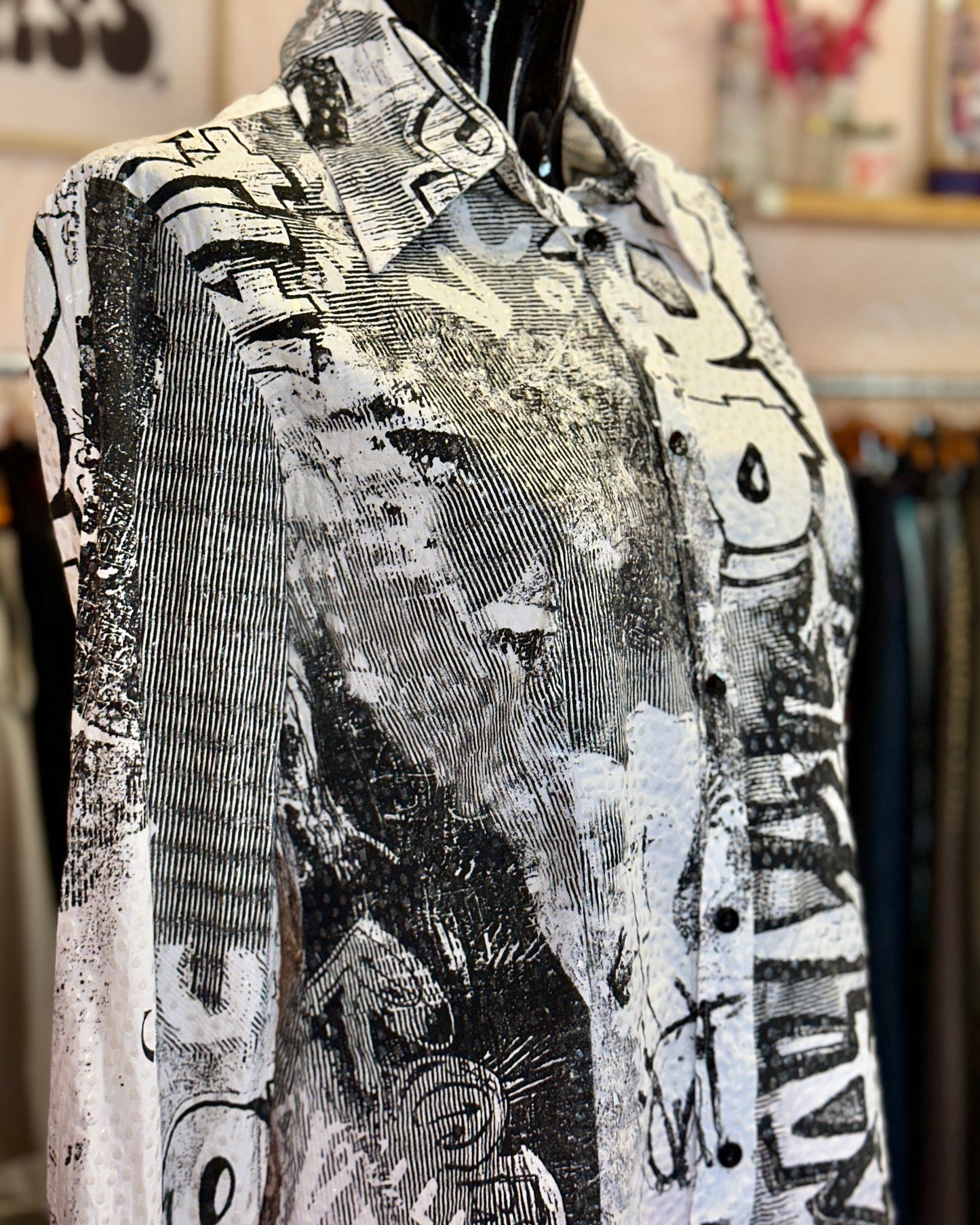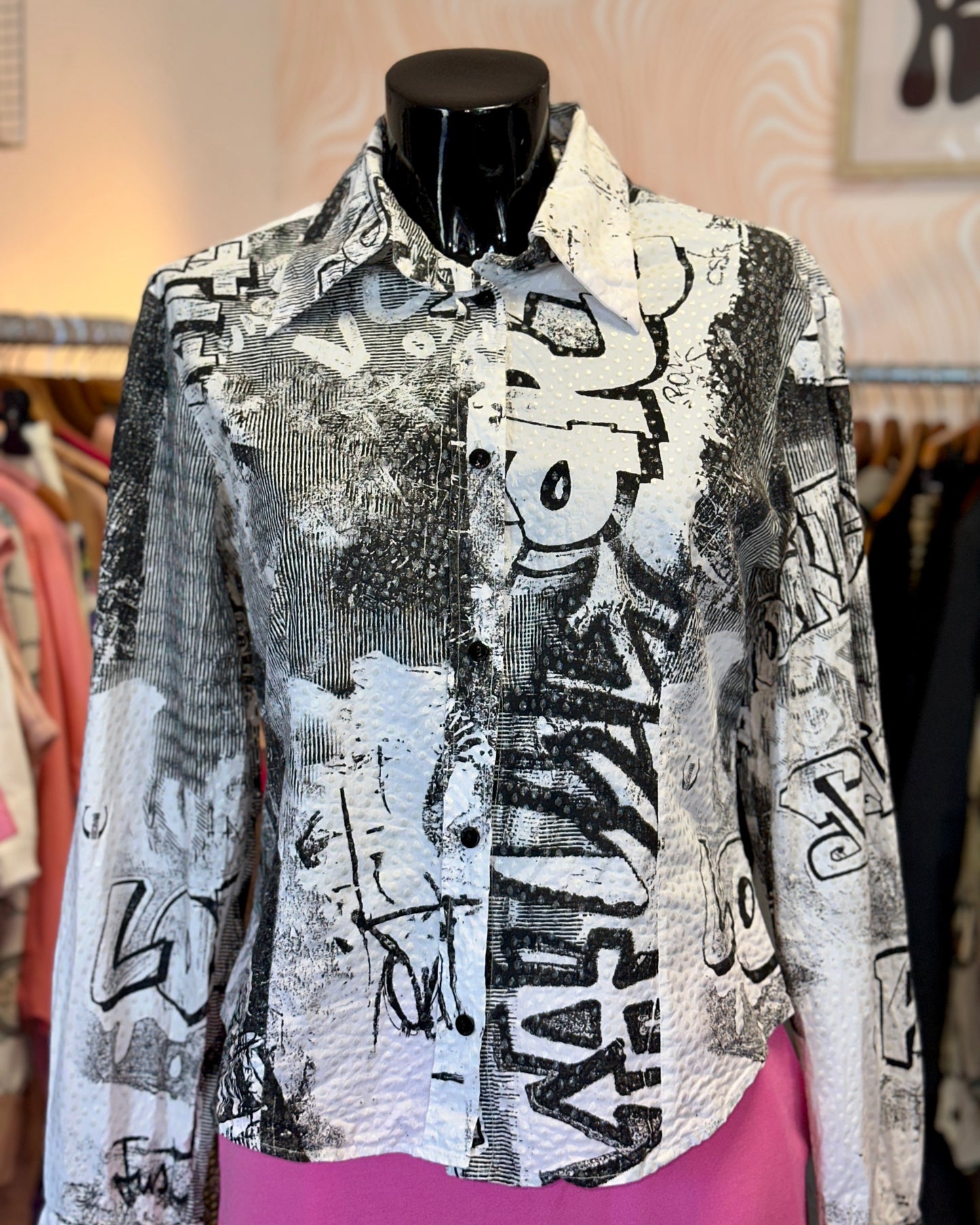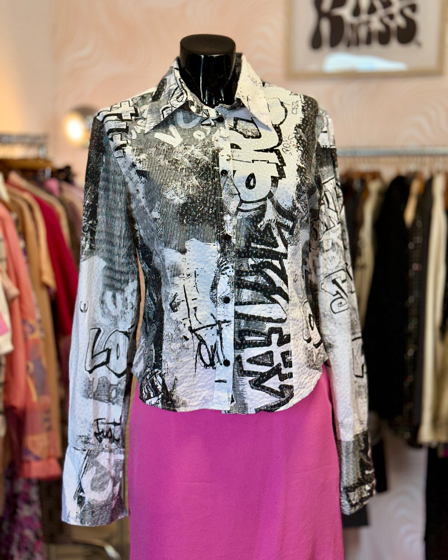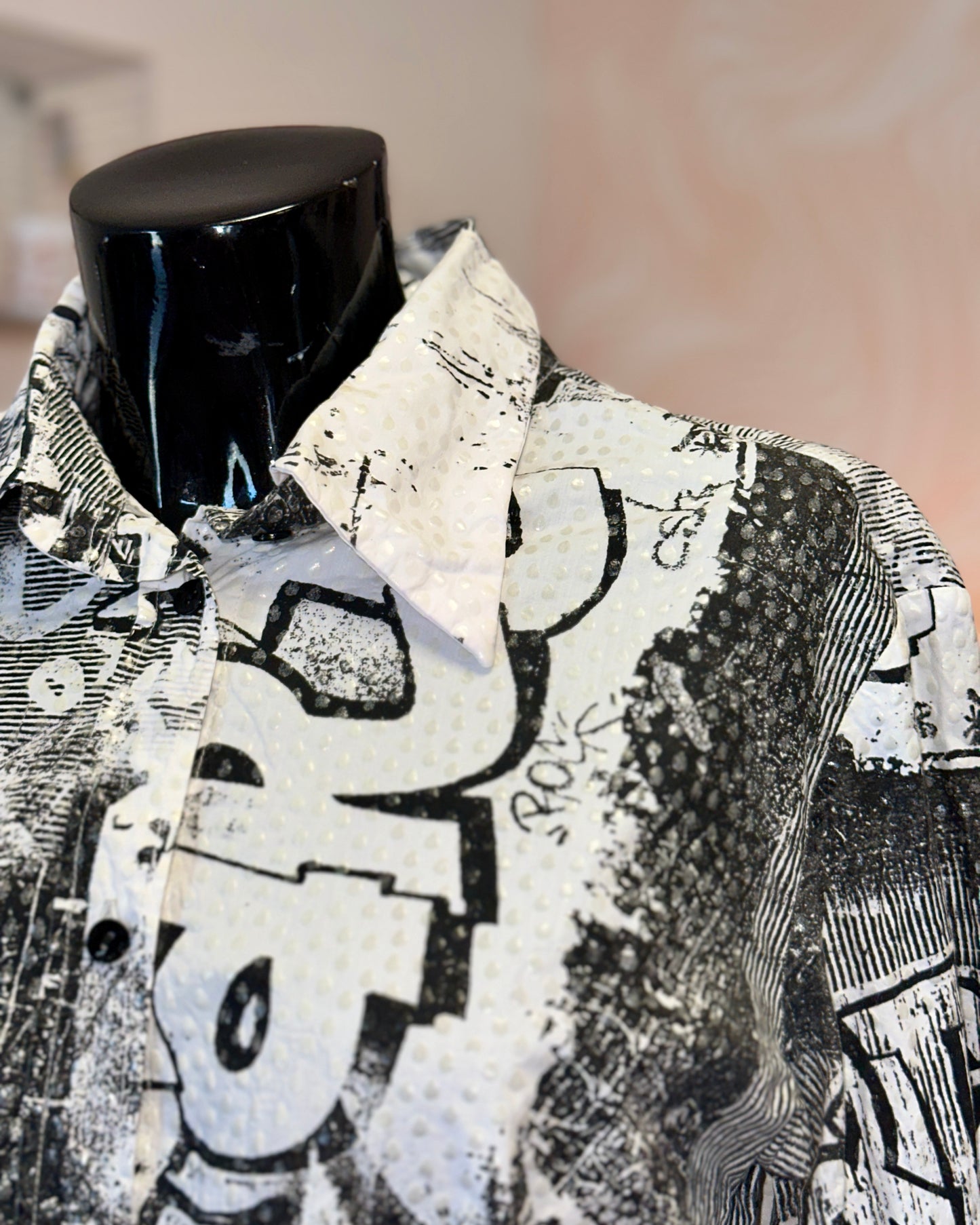 Chemise Just Cavalli noire et blanche, motif graffiti.