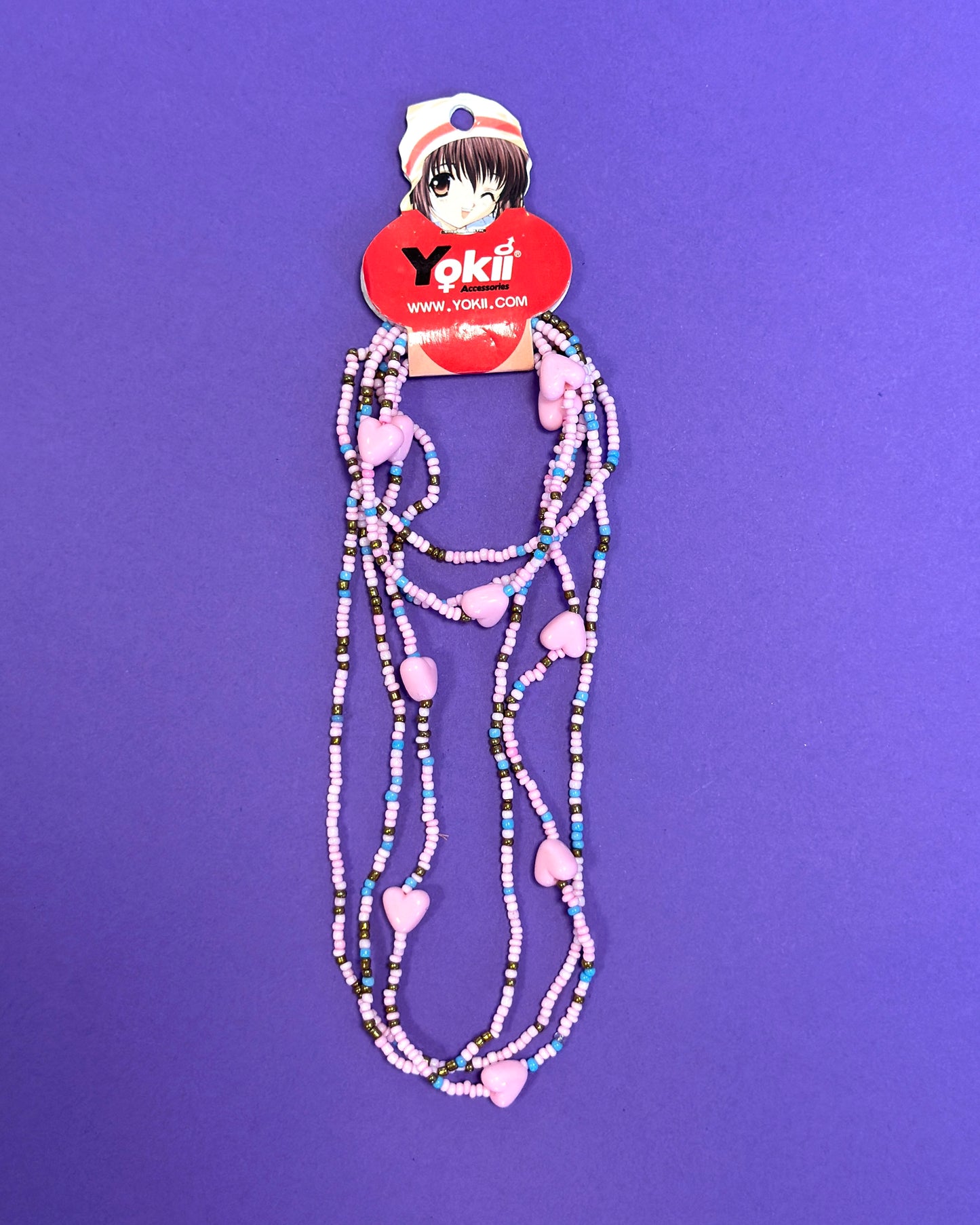 Ensemble collier + bracelet en perles | Coeurs Roses Pastel