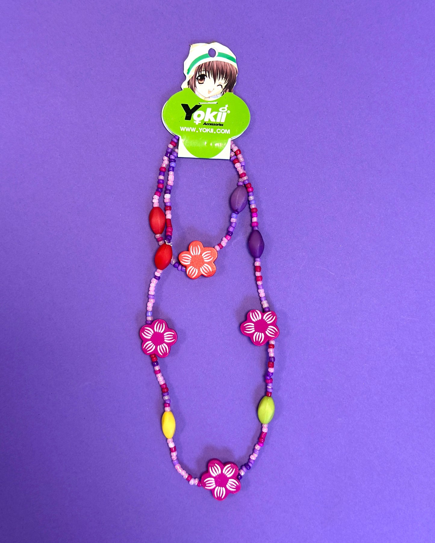 Collier ras du cou en perles colorées en bois, accompagné de son bracelet assorti. Un duo plein de peps, tout droit sorti des années 2000 ✨