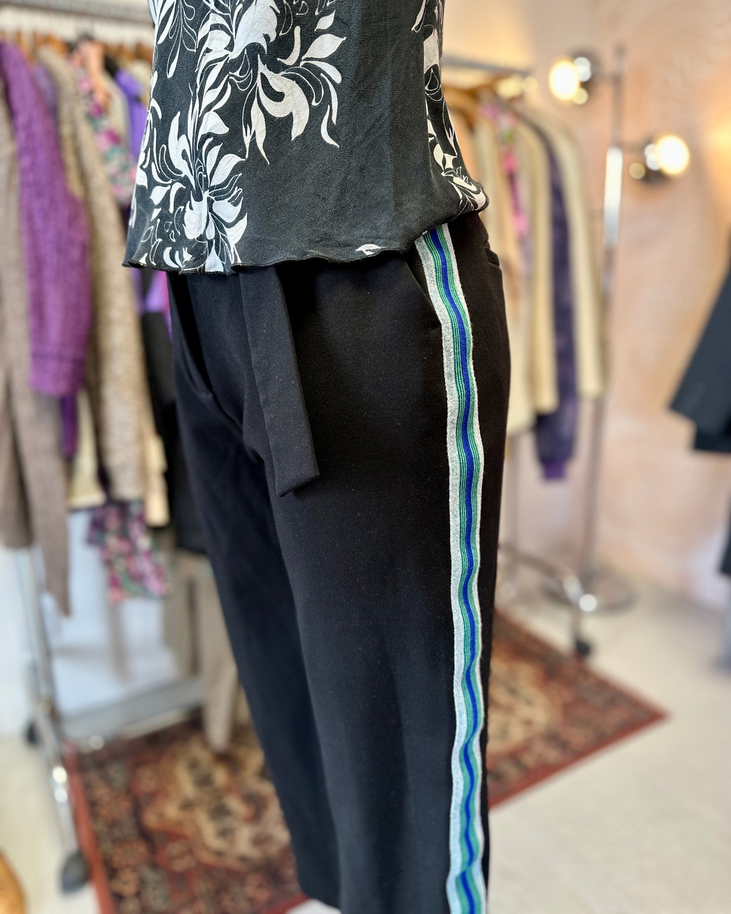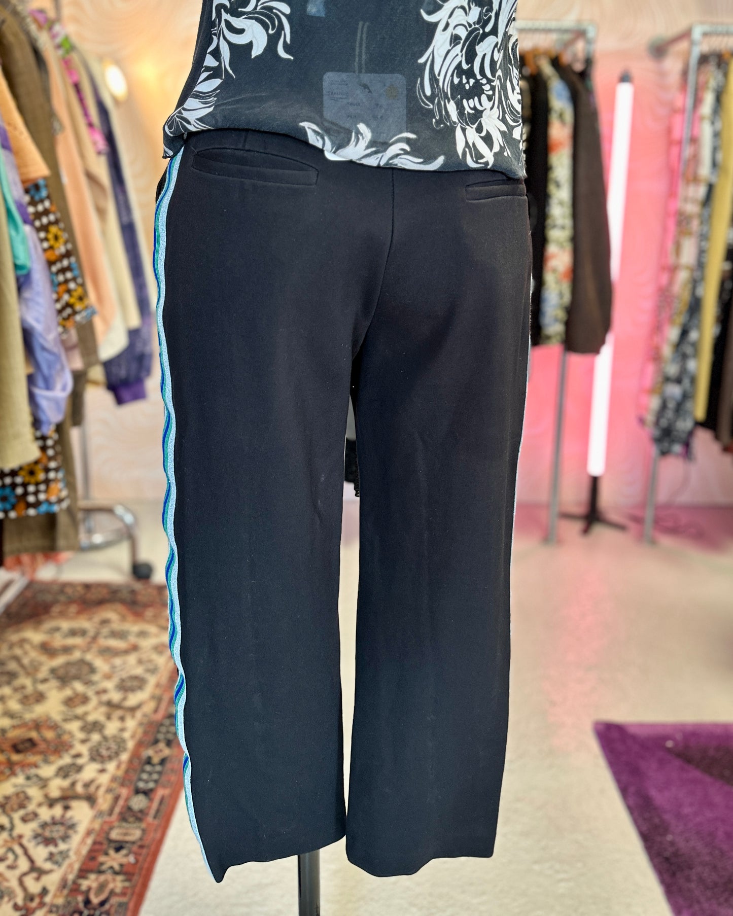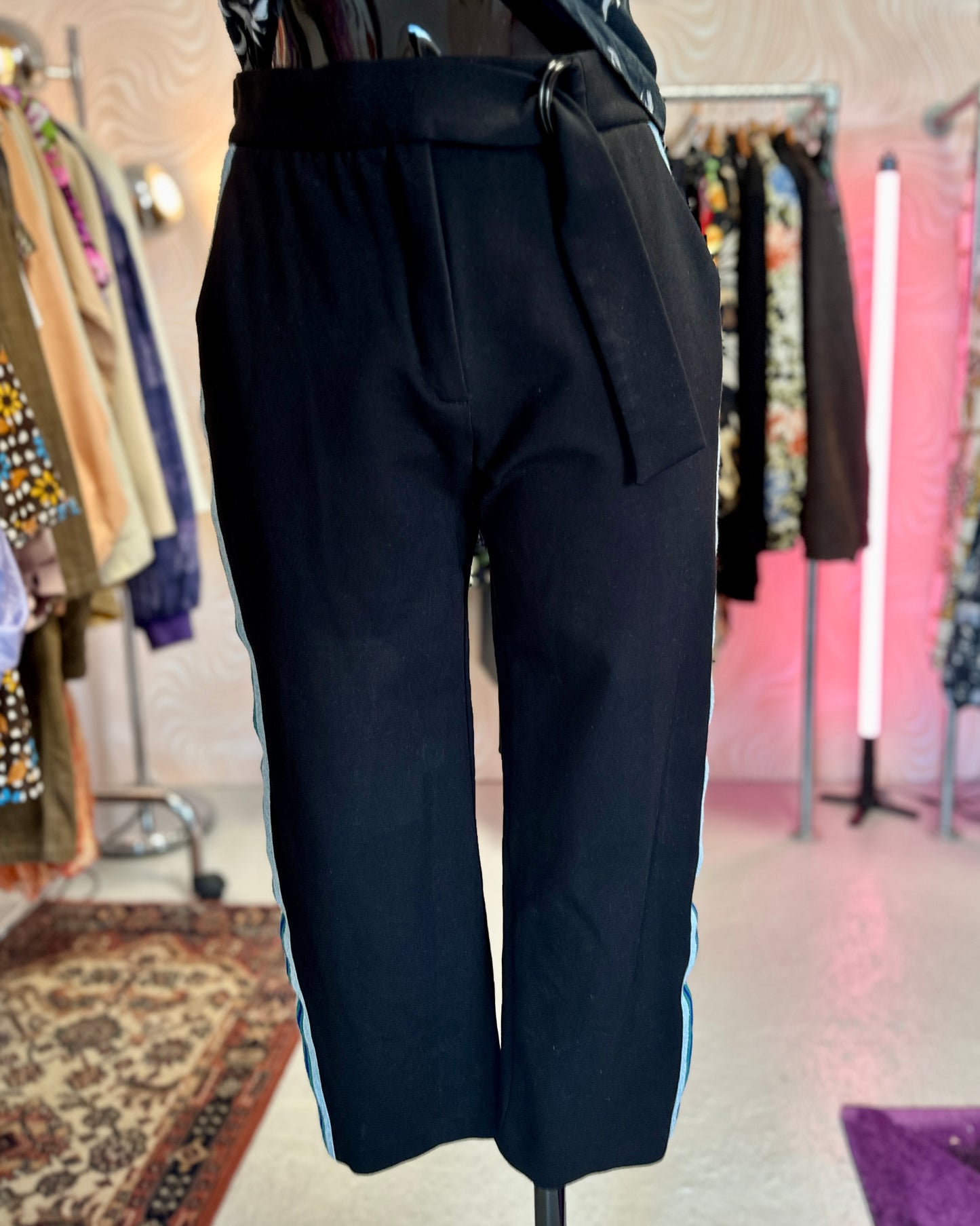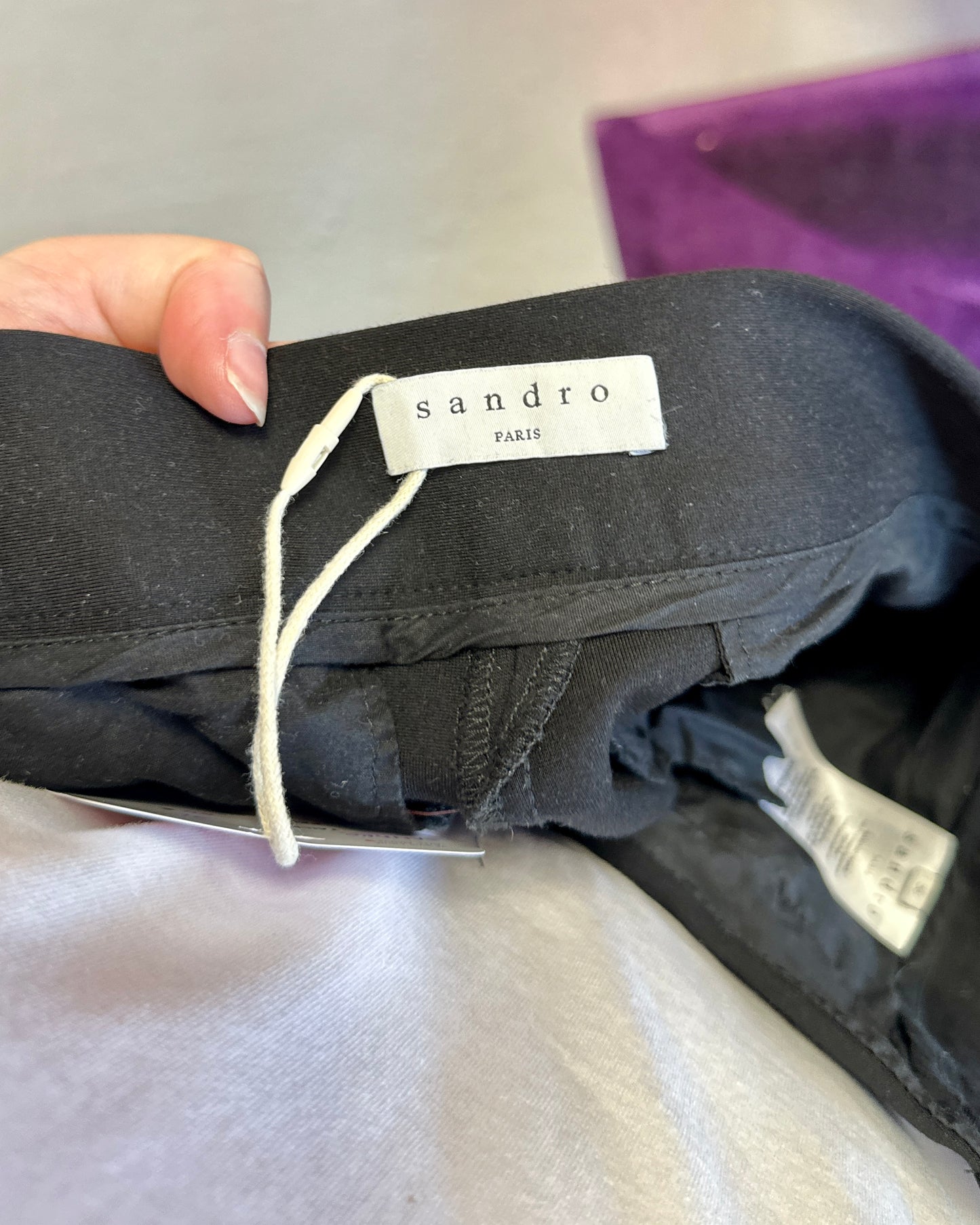 Pantalon style jogger Sandro, avec bandes brillantes sur les côtés.