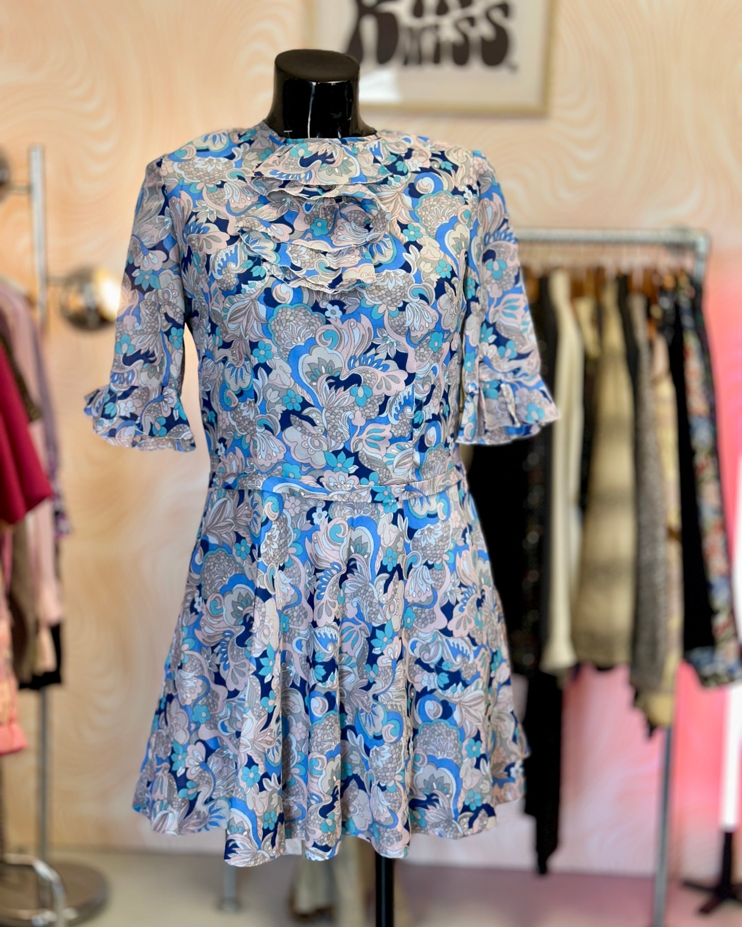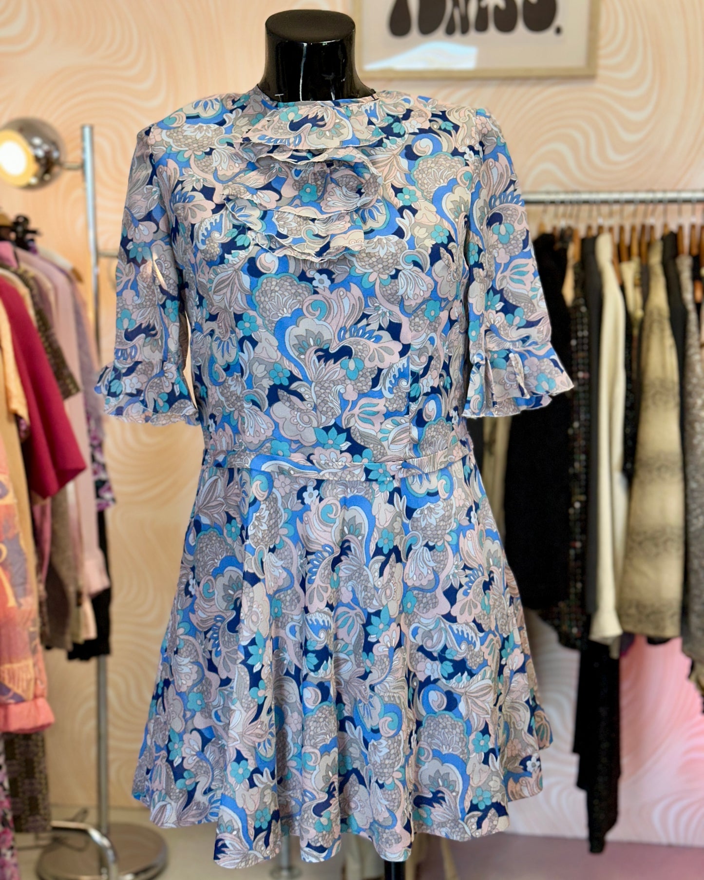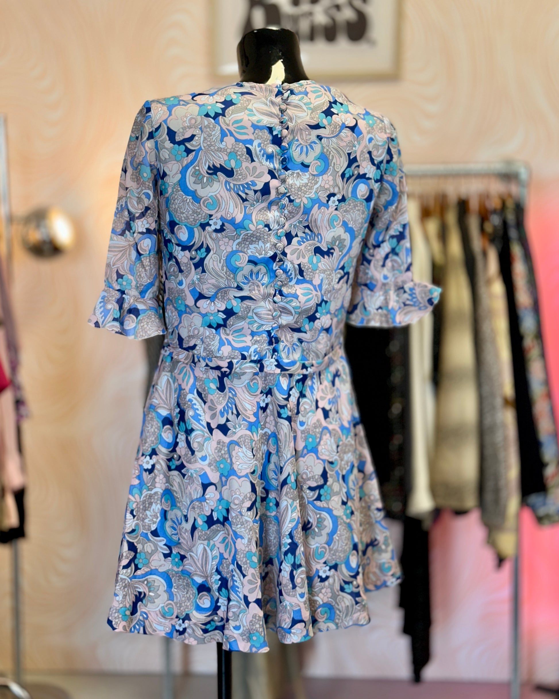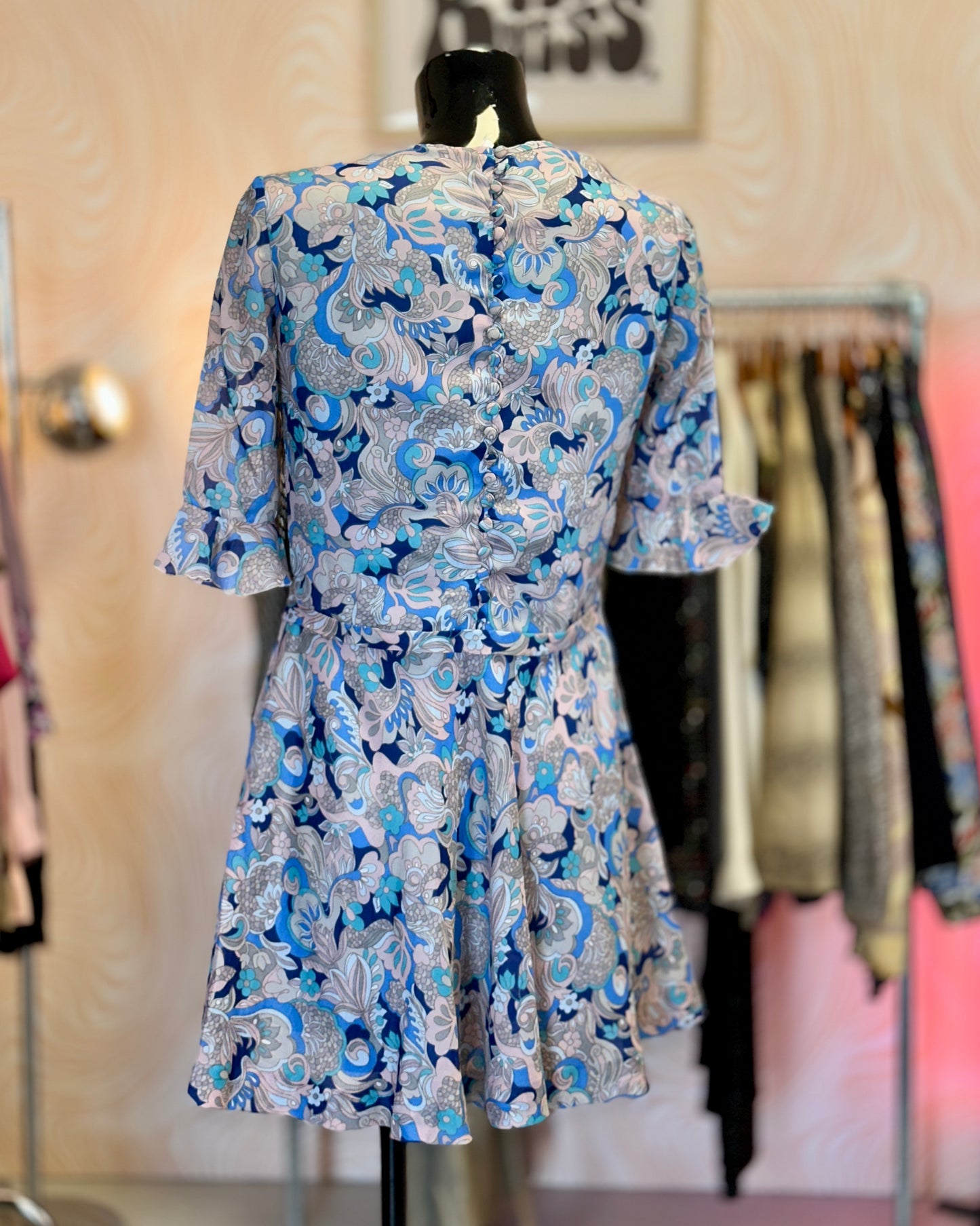 Robe courte bleue et rose | T .M